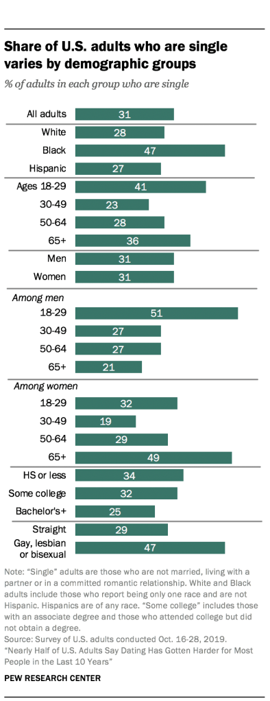 [viii] Brown, Anna. “A Profile of Single Americans.” Pew Research Center, 20 August 2020, www.pewresearch.org/social-trends/2020/08/20/a-profile-of-single-americans (Accessed: 20250503)